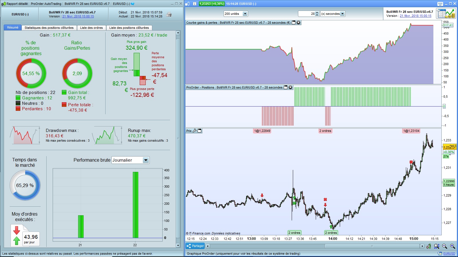 Below are the statistics and the graphics of the evening with V6.7 on ProOrder.