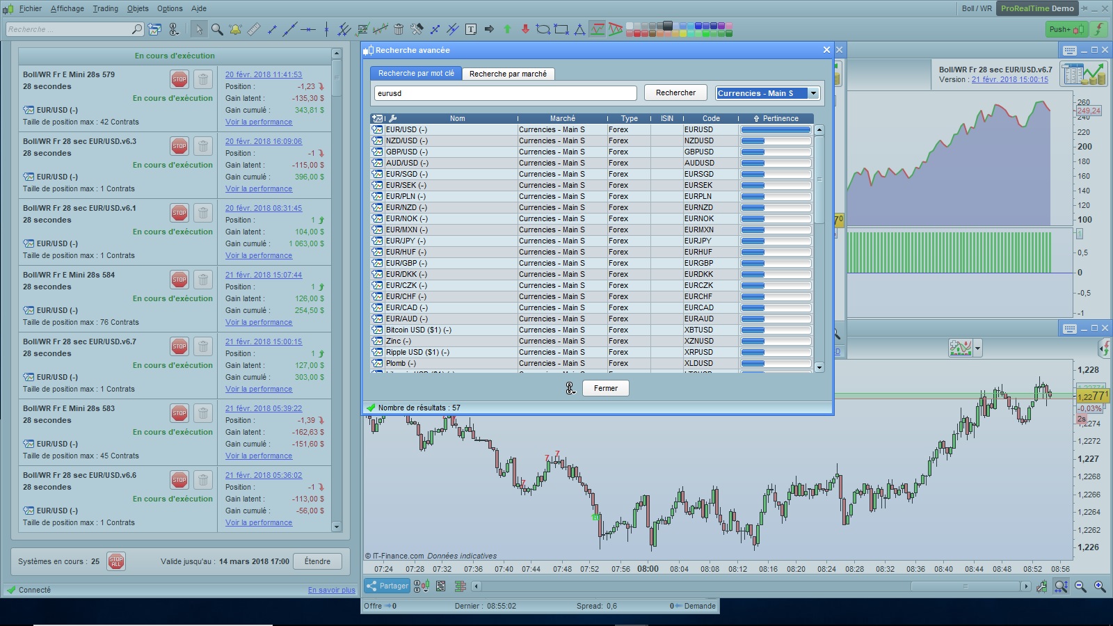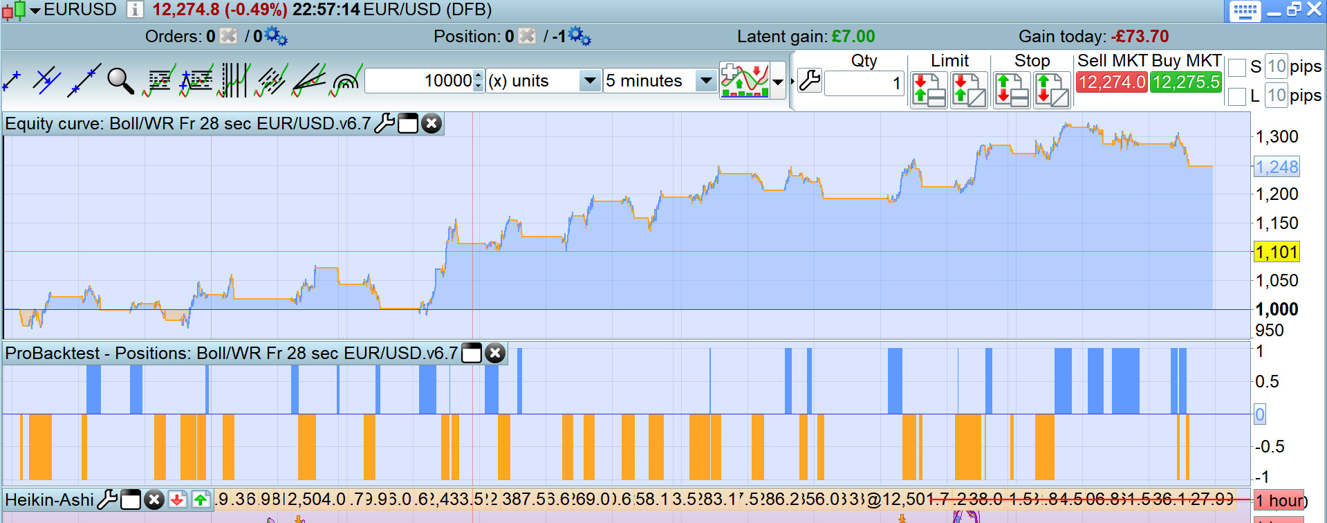 The early afternoon was hectic on the EURUSD. Indeed, between 13:30 and 13:55, the V6.7 went in drawdown, and since then has caught up and even made a profit.