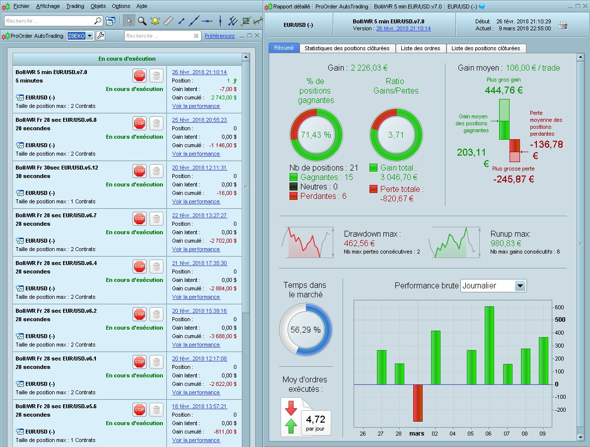 When to drawdowns, I have no information about this in ProOrder statistics, but from memory, I just know that these 2 strategies did not know like the drawdown v2 important and they never had a negative gain .