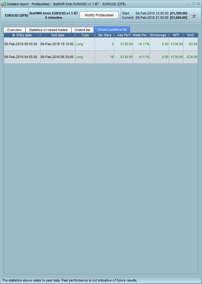 Then I changed the spread – by 2 points – and a Long trade (no short trade at all!) was entered within 10 mins or so of times above! I should have made screen shots sorry.
