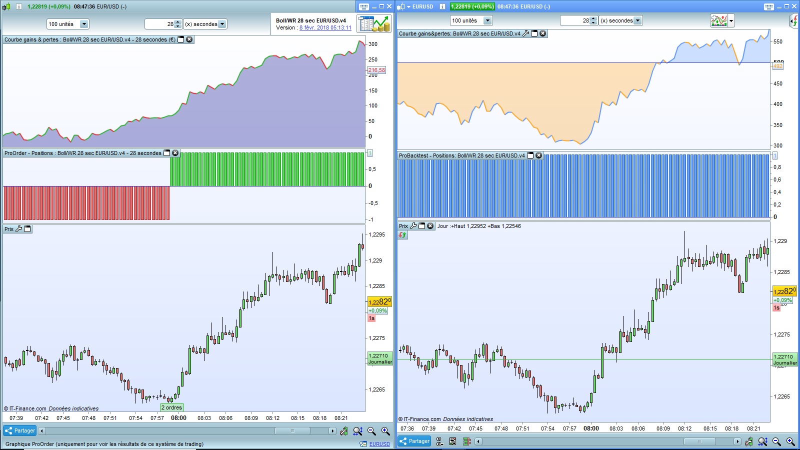 On the left, the ProOrder Live. Right, the Backtest.
