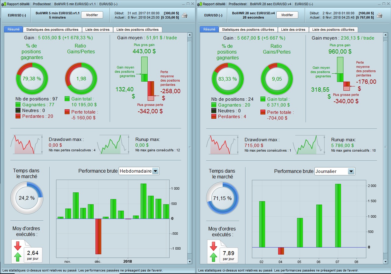 I started a last one that has 3 inputs and 3 outputs on the same structure as the V4 (it is the V4.5), it behaves like a scalper, this 3rd entry and 3rd exit gives us precision. I have also integrated in this version of the code that allows when the profit limit is reached to suspend future trades. It is based on an observation that we do not be all day to launch trades, if we want to be profitable and reduce Drawdowns. I tested it last night on ProOrder, it’s promising.