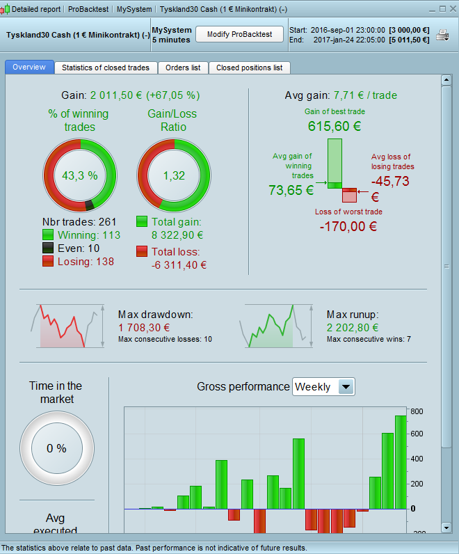 Try to remove the Fridays, or to see how it works every day of the week separately you can go testing it only on Mondays, only on Tuesdays … and you will see how historically Fridays works badly. For them it changes the value daytrading = 1, by daytrading = 0 on the day that you do not want it to operate. If you put in all 0, except on Friday, it will only operate on Fridays. I personally do not like how Friday works