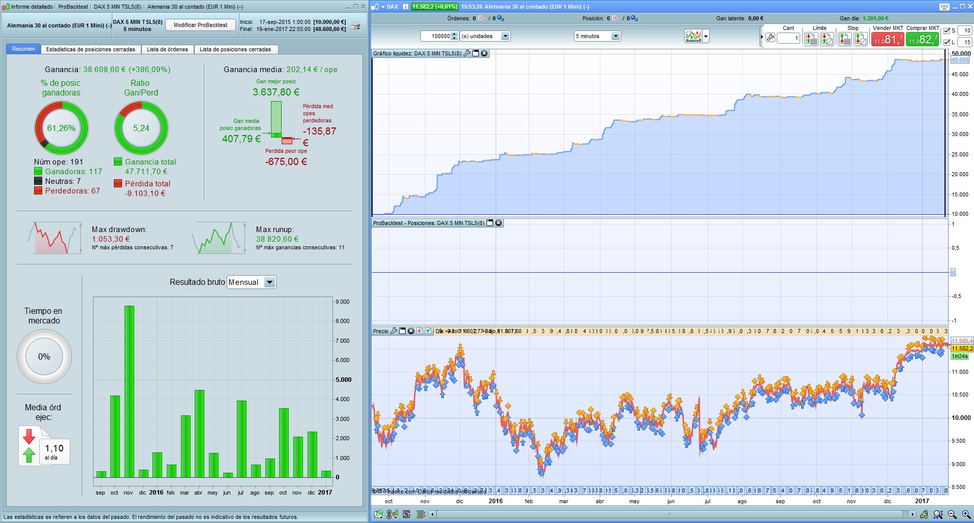 When I run Algo 5MIN TSL5 CON GSTOR RIESGO with tick-tick OFF I get zerobars, big profits, few losses and 40K overall profit (Capture 1 & 2 attached) .