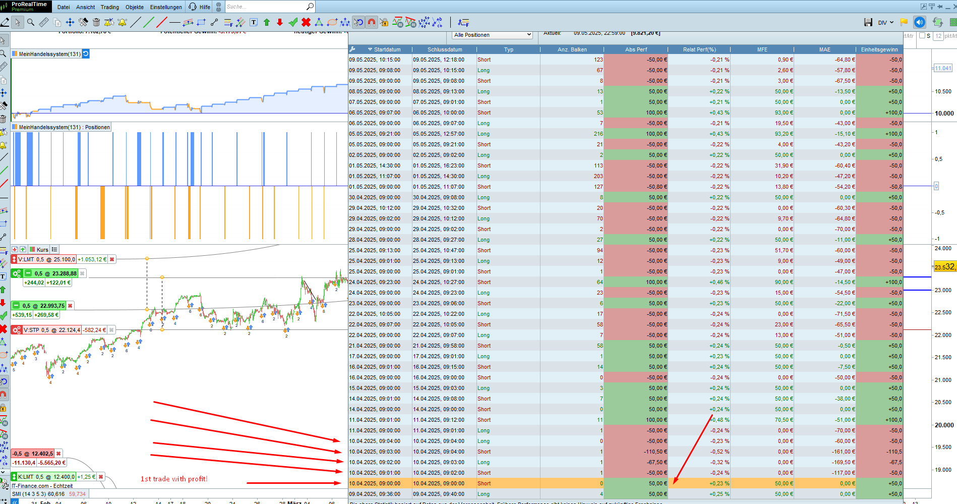 But (!!) then the system opens further trades on 10.04.! That’s not supposed to happen! It’s only about 50 points. If a profit of 50 points is made on a day (maybe with the 1st trade), then no more trades are made on that day!