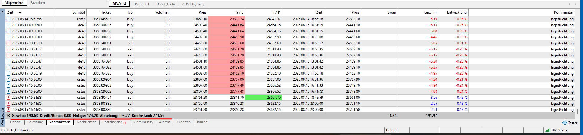 Hello dear people, maybe someone can help me, I am not a light in programming, but here is an approach that differs from the usual indicator-driven approach. In some of the forums I frequent, the following approach is used for indices, especially the Dax40.