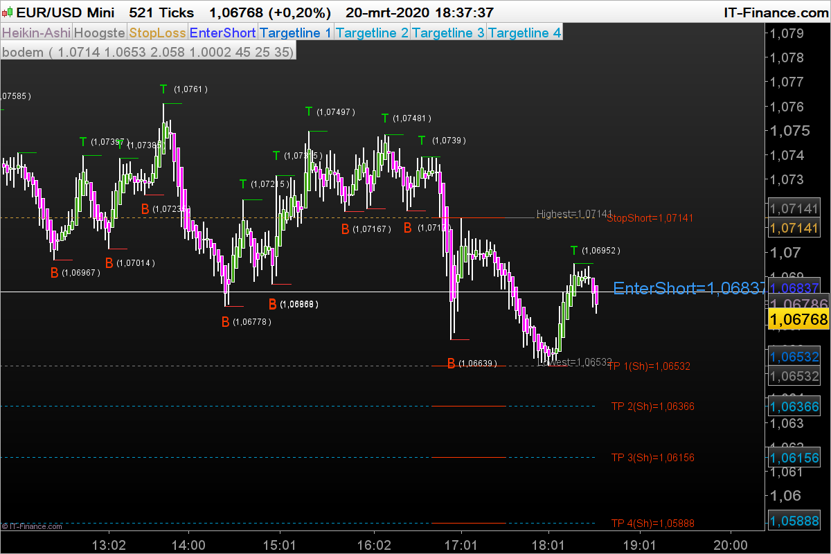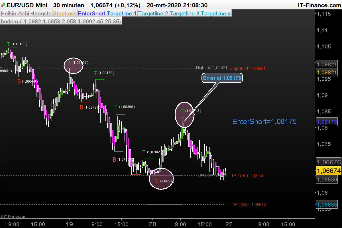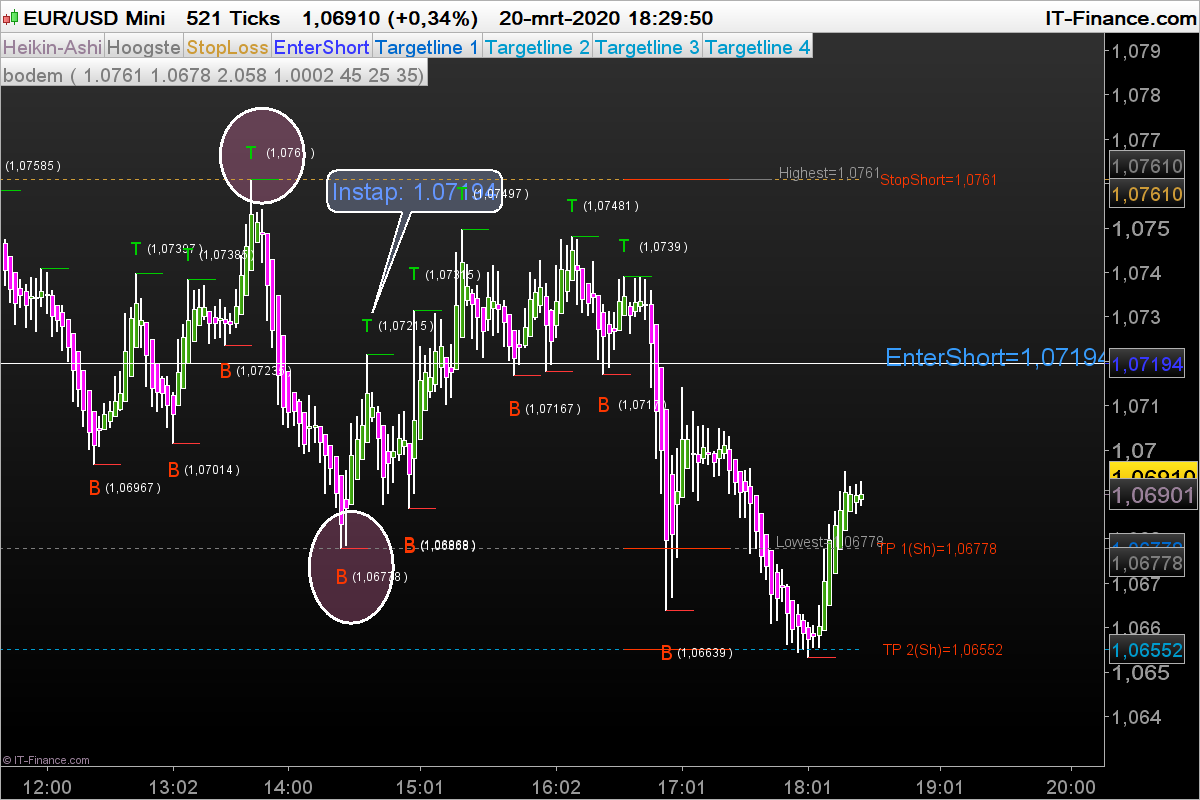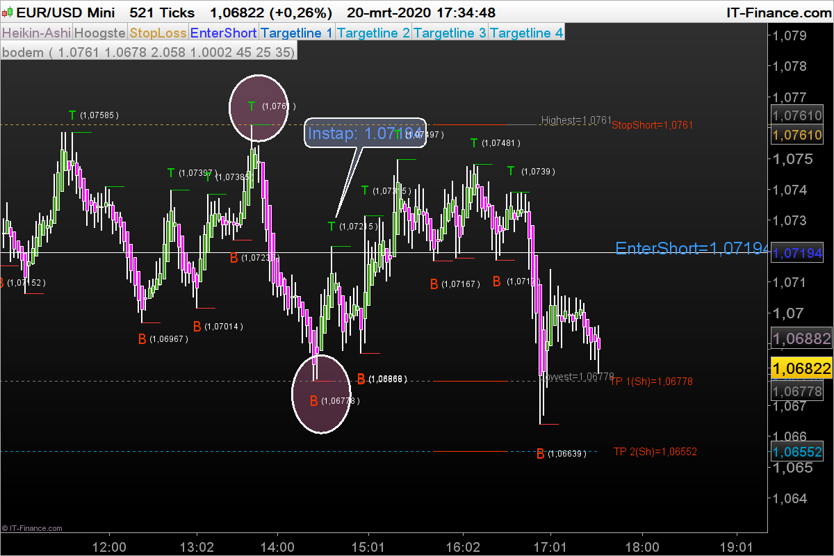 Als Target 2 (TP2) wordt gehaald verplaats stoploss naar TP 1.