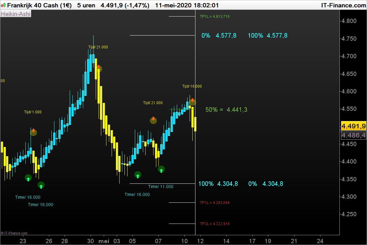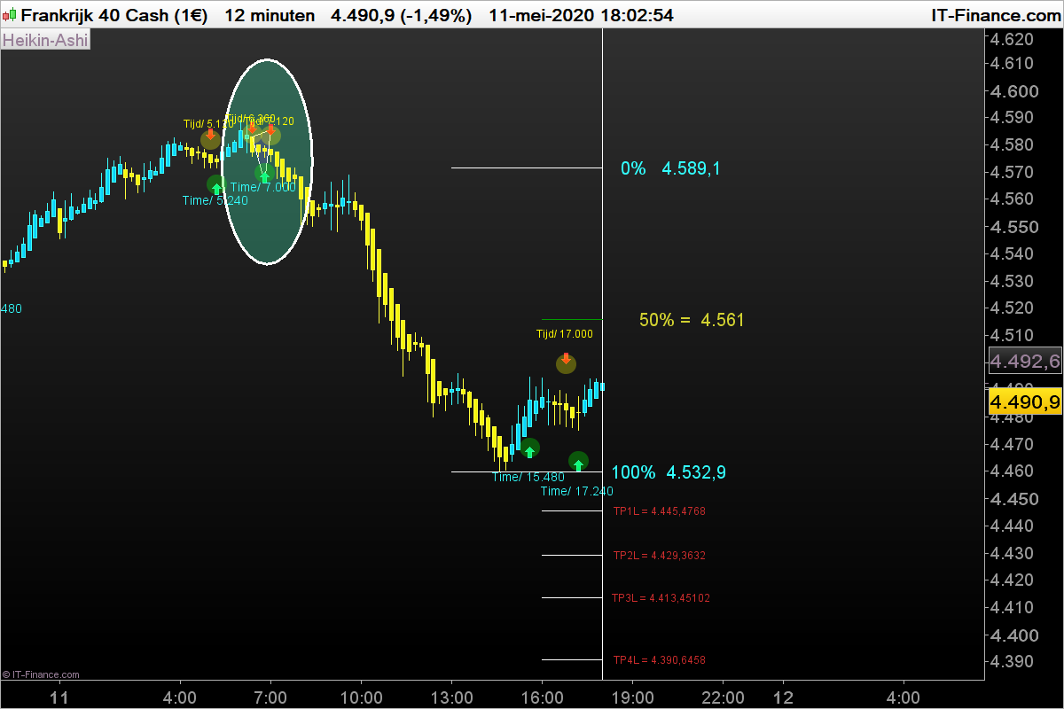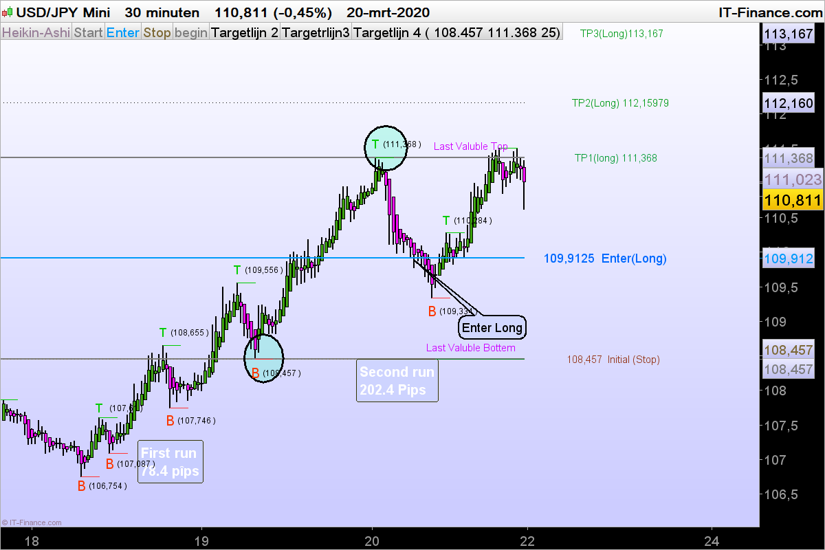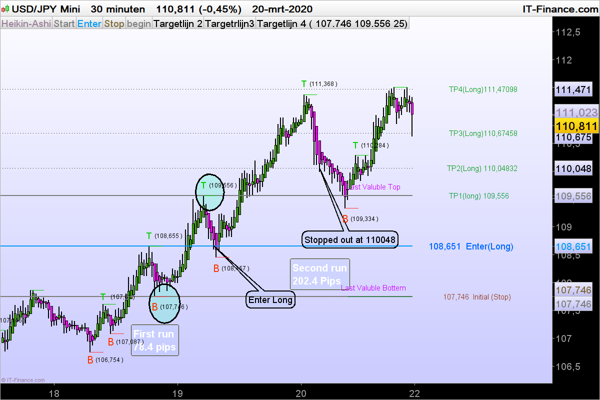 Als Target 2 (TP2) wordt gehaald verplaats stoploss naar TP 1.