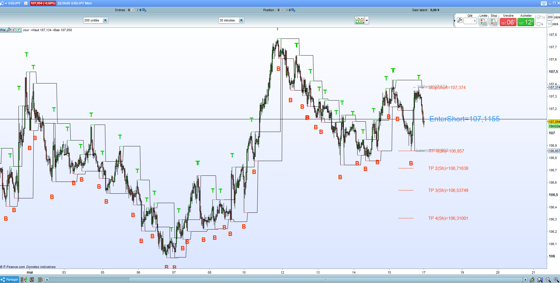 See attachement for the indicator ( 2 in 1) The goal is that the indicator choose whether we go short or long.