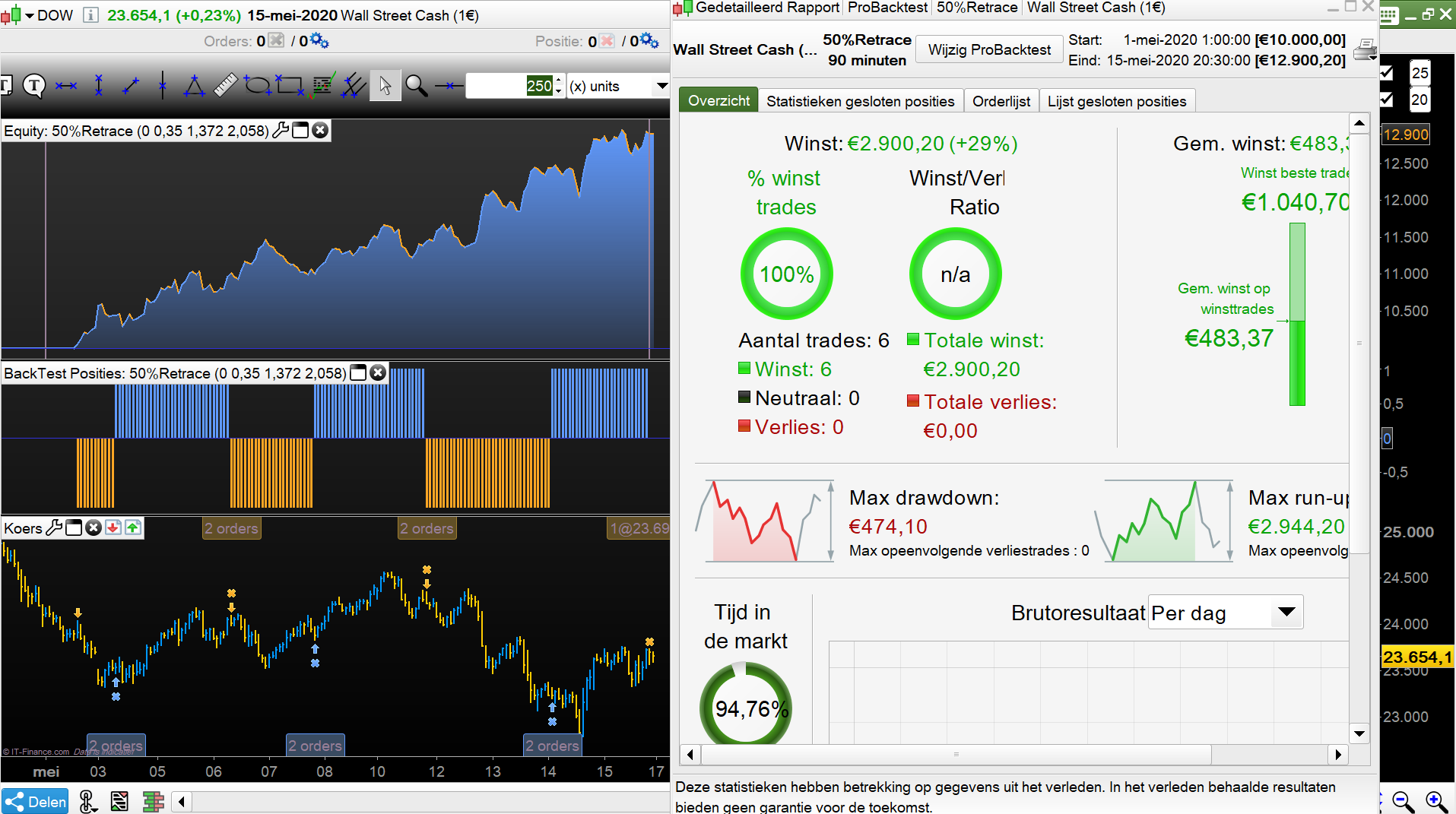 Prepairing the automatic system 50% retrace. based on the first results of a backtest.