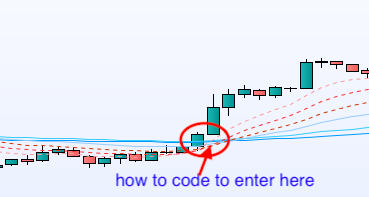 Unfortunately your pic is fine for trading manually while watching your charts, but coding that behaviour in an automated strategy is not that easy, for instance you, at point 2, say “approaching”, but a piece of software cannot understand, approaching is 10 pips away or maybe just 2, or crossing (which one of the six EMAs should approach or cross the other group to handle it properly)?