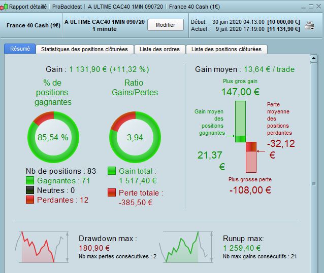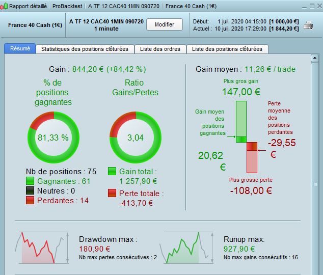 Ci-joint performance du jour au 10/07/2020 avec 1000 € de capital en début de backtest