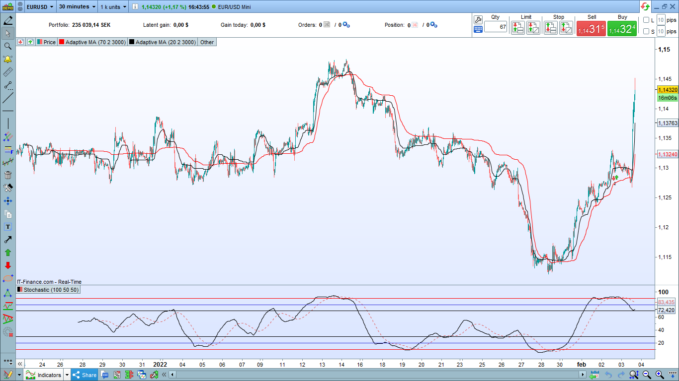 Let’s say my strategy is based off the Adaptive Moving Average indicator and the Stochastic indicator exclusively.