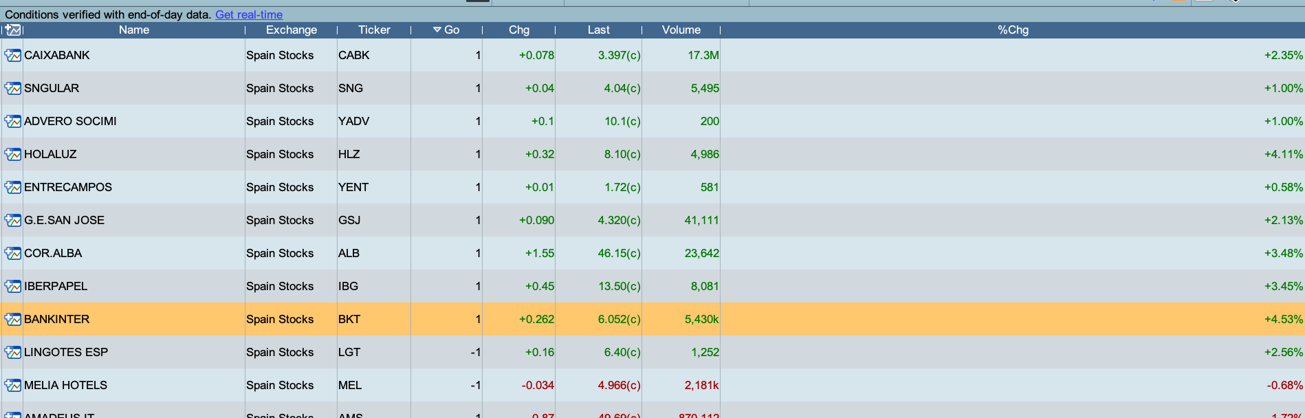 The screener output is a list of Tickers with one additional column that gives the direcion of starting trend. The column is named “Go”: (go) Long = 1; (go) Short = -1.