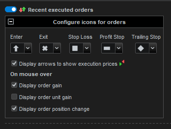 .When in back-test, the order icons for ENTRY; STOP; TARGET; Trailing STOP, sh0w as expected if there triggered.