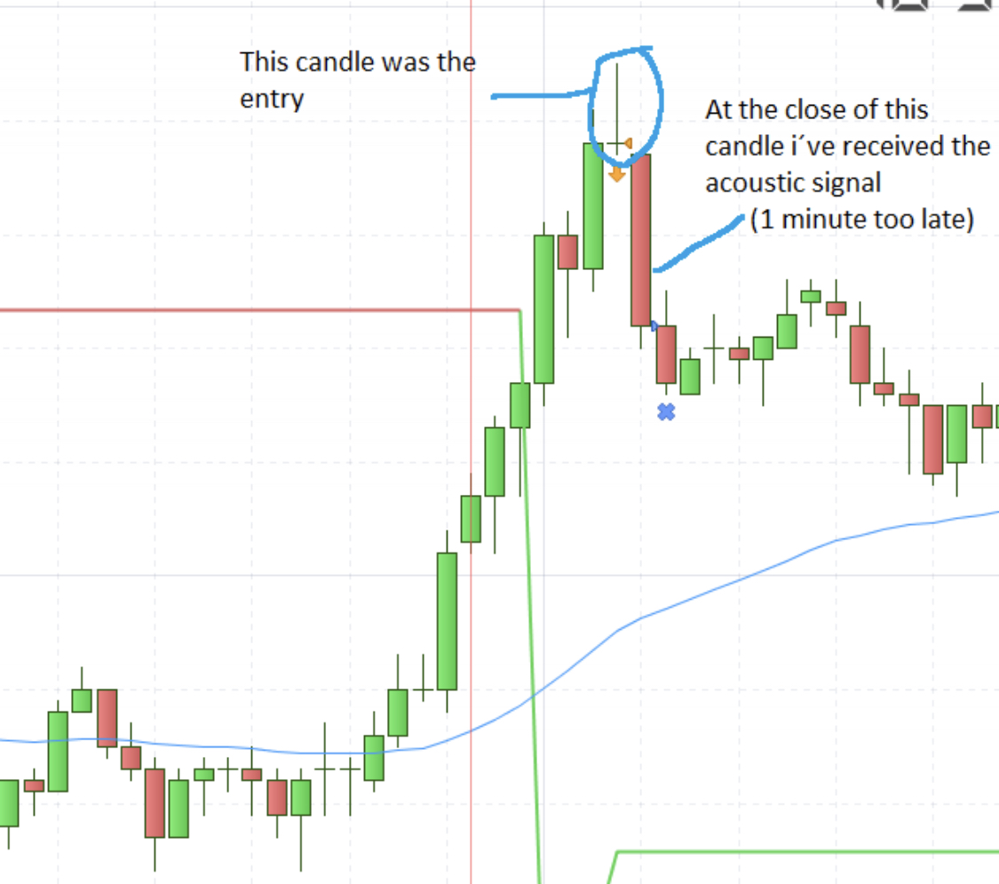 I need help with my trading system. It works really fine on prorealtime, but i receive the acoustic signal for a new order always a minute too late.