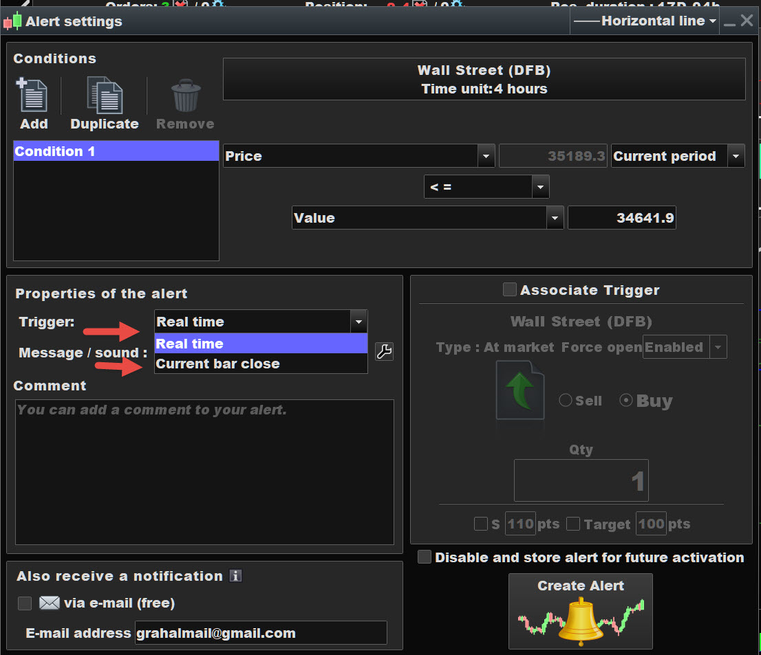 The alert is configured with Realtime and Standard. I just think the main problem is, that the system runs as “ProBackTest” system.