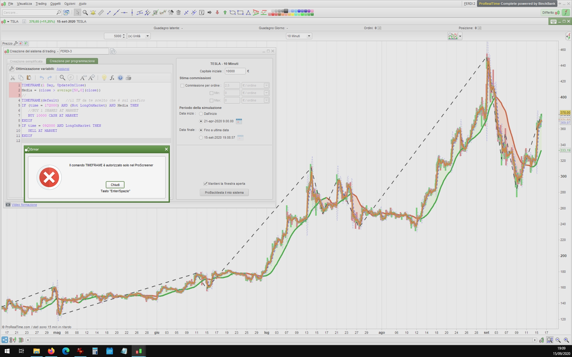 Impostato TF 10 minuti ma continua a riportare l’errore “Il comando TIMEFRAME è autorizzato solo nel ProScreener”