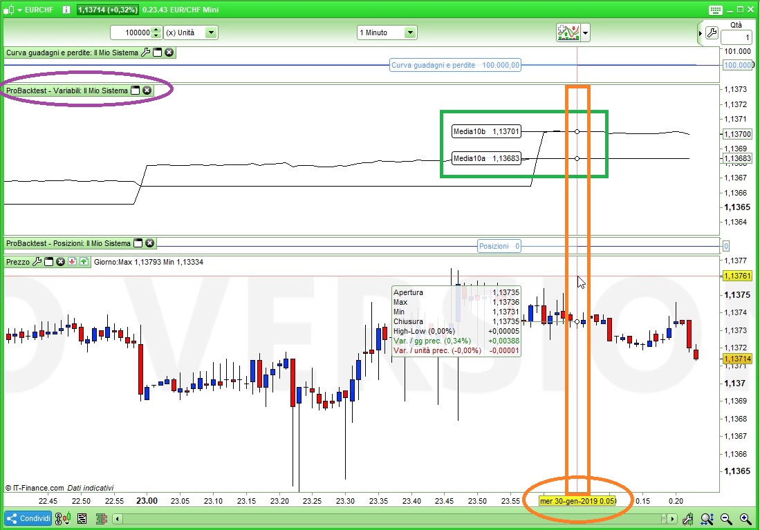 Per evitare falsi segnali, vorrei che la vendita si effettuasse solo alla CHIUSURA della barra (di 15m) per cui, per avere sicurezza il prezzo non sia nel frattempo “crollato”, vorrei aggiungere la seguente condizione (C5):