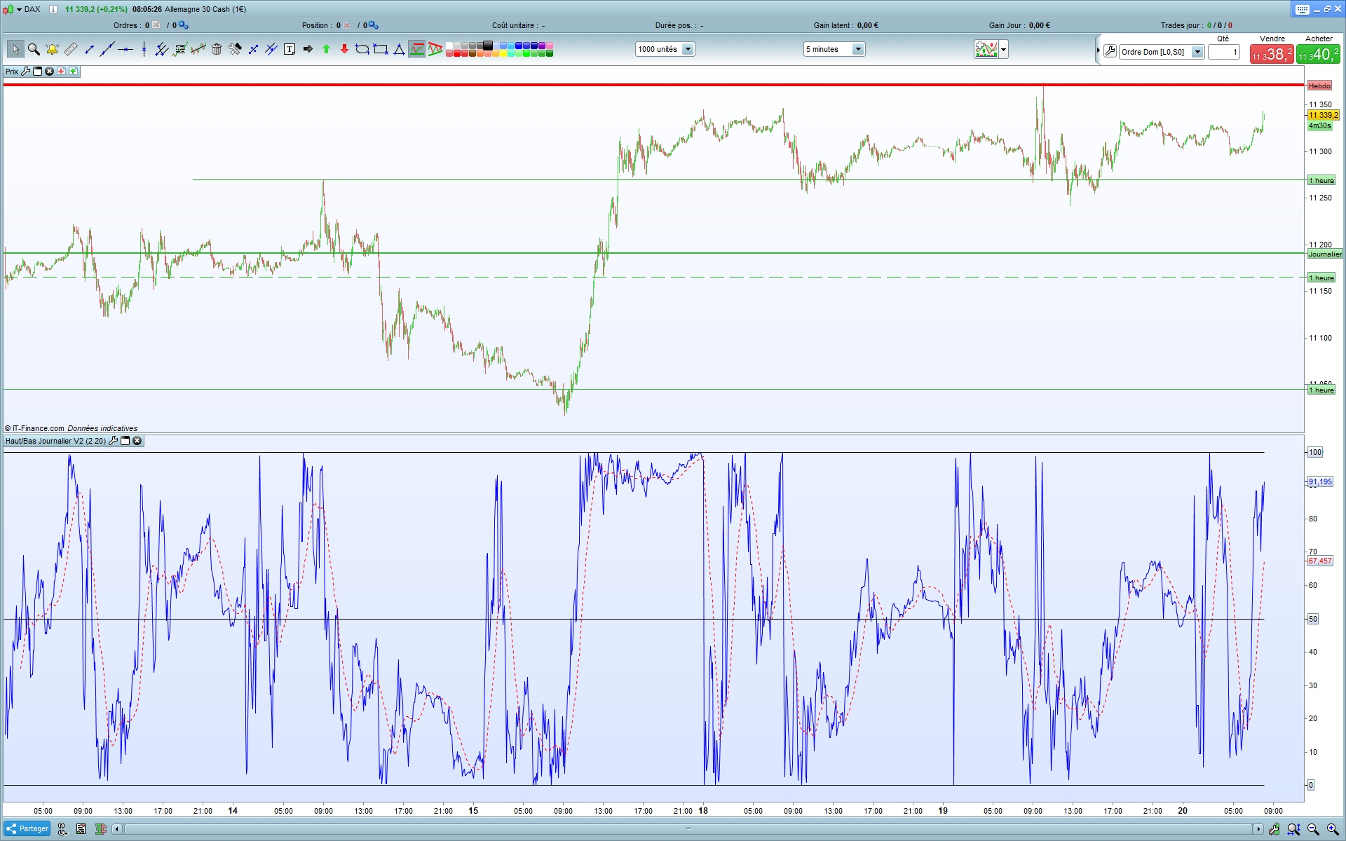 Une petite précision relative a ces instructions Nicolas ! A tu remarqué que ce petit indicateur fonctionne correctement sous toutes les unités de temps (supérieur à 1 minute) mais si tu le mets en seconde ou en ticks, il réagit différemment et n’indique que les derniers plus haut et plus bas (mais pas ceux de la journée en cours) à par que je me fourvoie ce qui ne m’étonnerais qu’à moitié 🙂