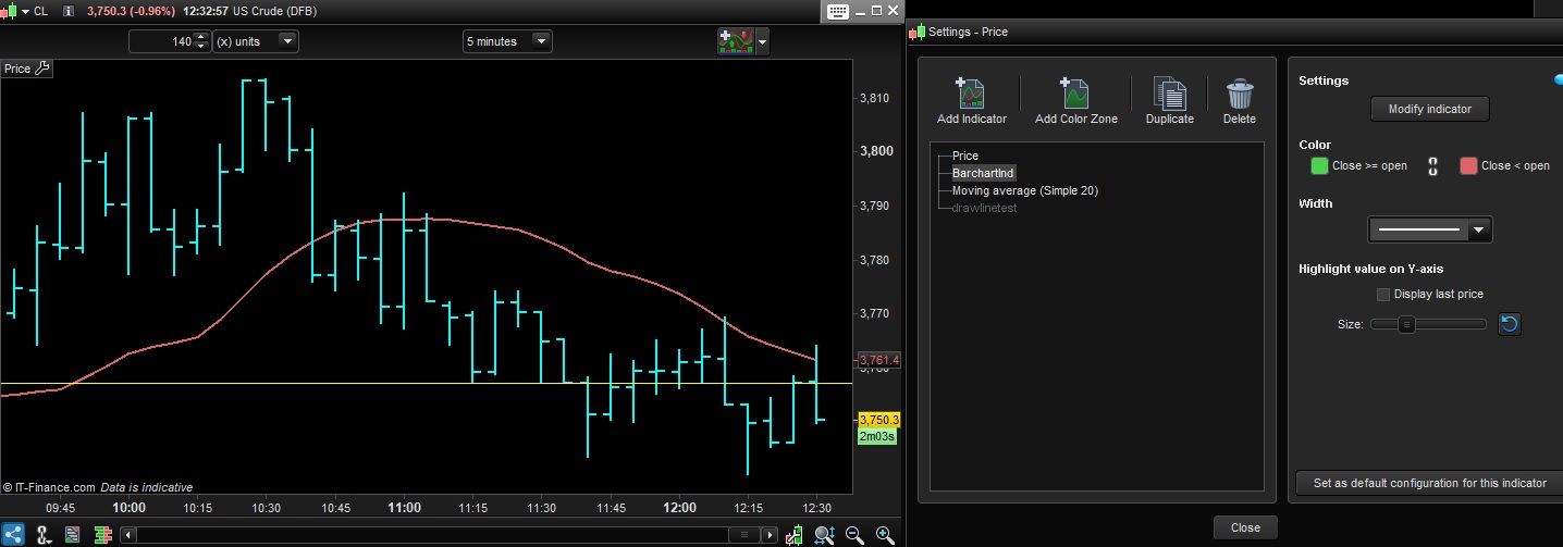 Hi, How to set to display price chart bar on top all other indicators added? for example if I add a moving average it gets displayed on top of price bars.. I want that line to get displayed back of price bars