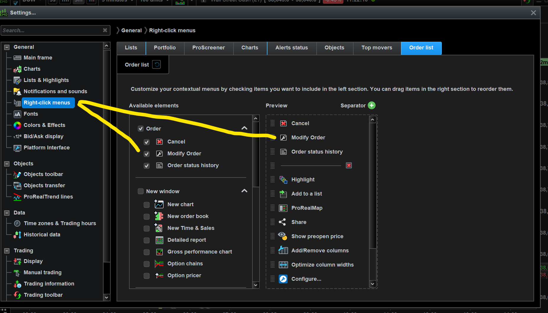 Did you hover over existing Order as I described?