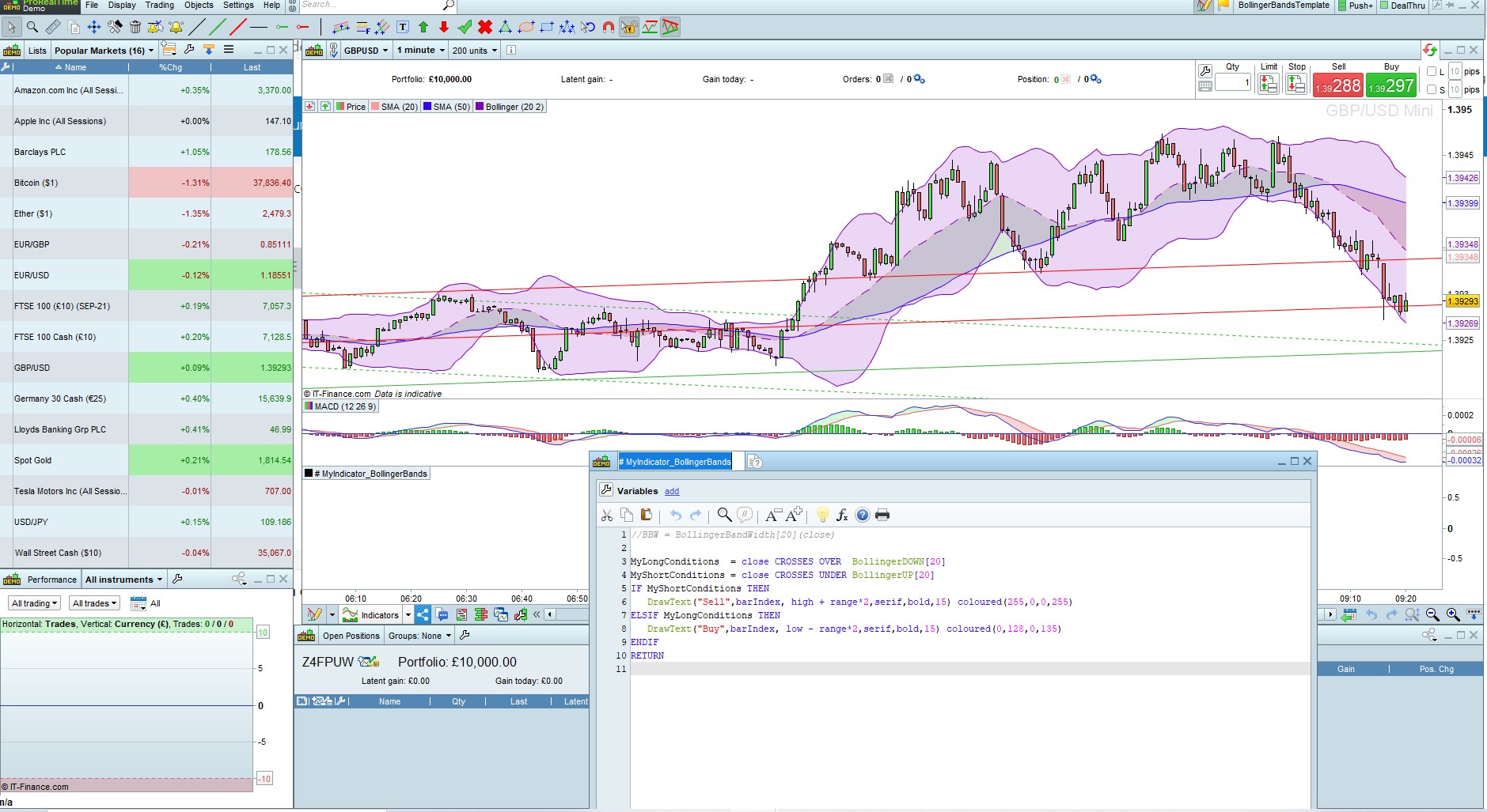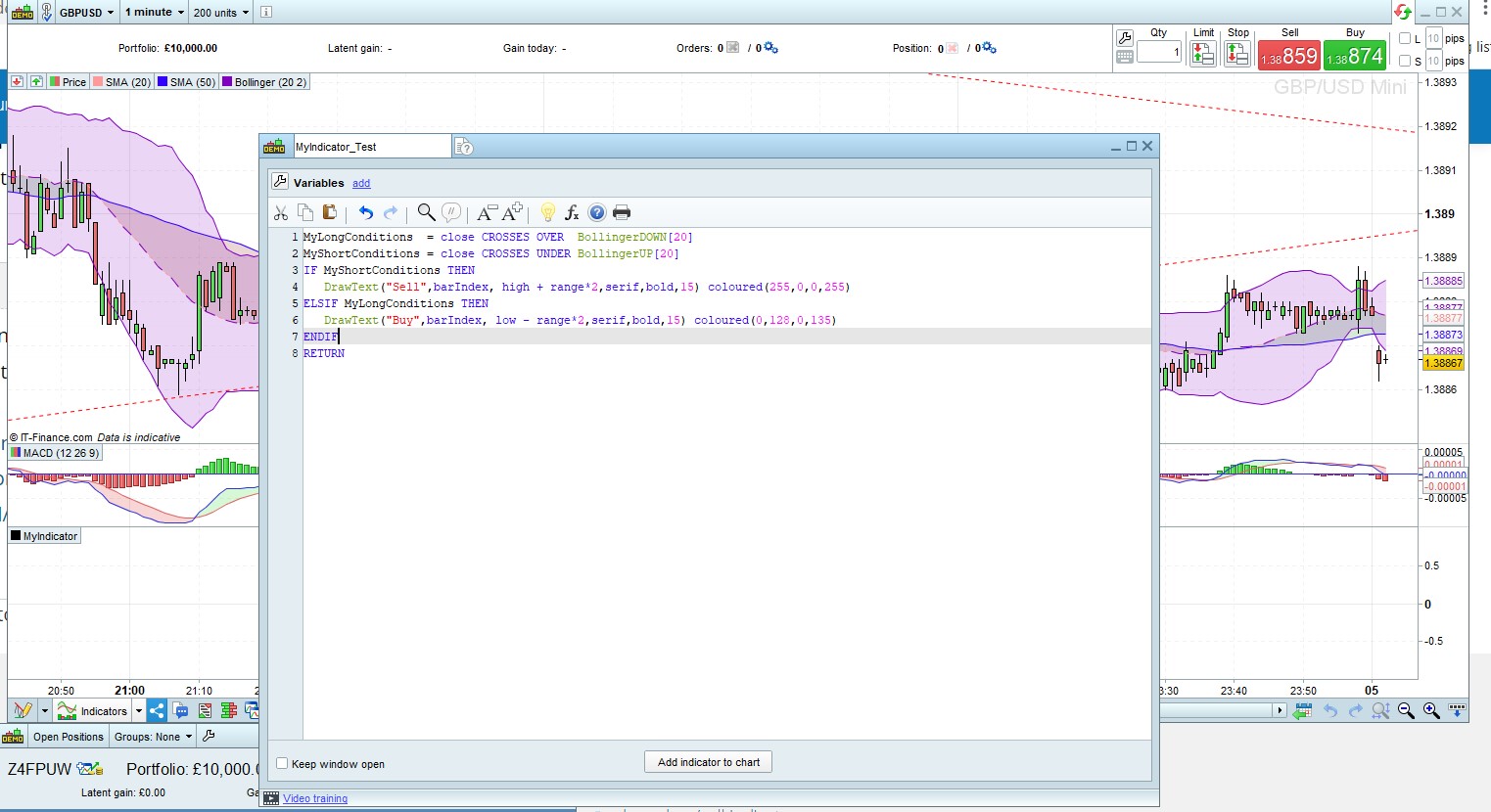 Am working on a Bollinger bands idea and auto system where i want to be able to write “Buy” on all points on the charts that buy conditions are met and “Sell” where all sell conditions are met.