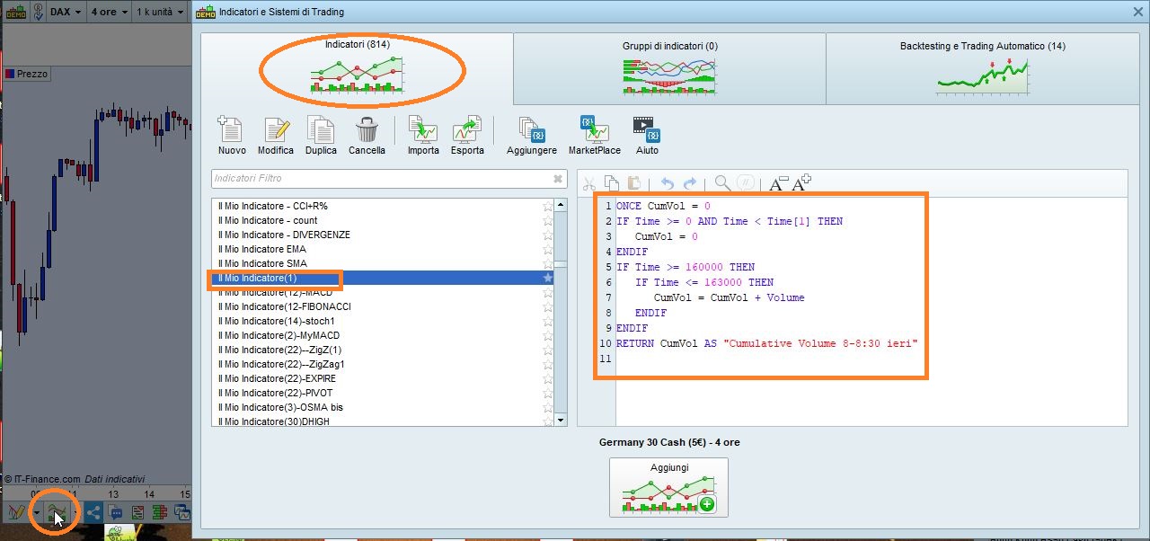 Click the button “Add indicator to chart” and this will save your code.