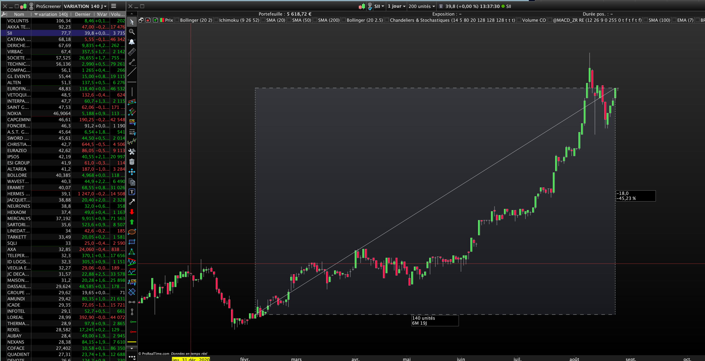 Je ne peux pas ouvrir PRT actuellement, mais sous un autre logiciel, pour SII, je vois bien autour de 77-83% de hausse sur 139-140 bougies. Cela depend d’ou on part, le mieux c’est de prendre les donnees en fin de journees, figees a titre de preuve.