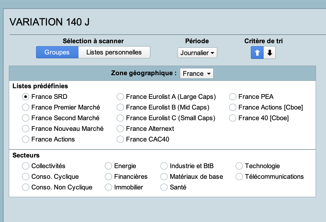 J’ai lancé le screener en journalier sur FRANCE SRD par exemple