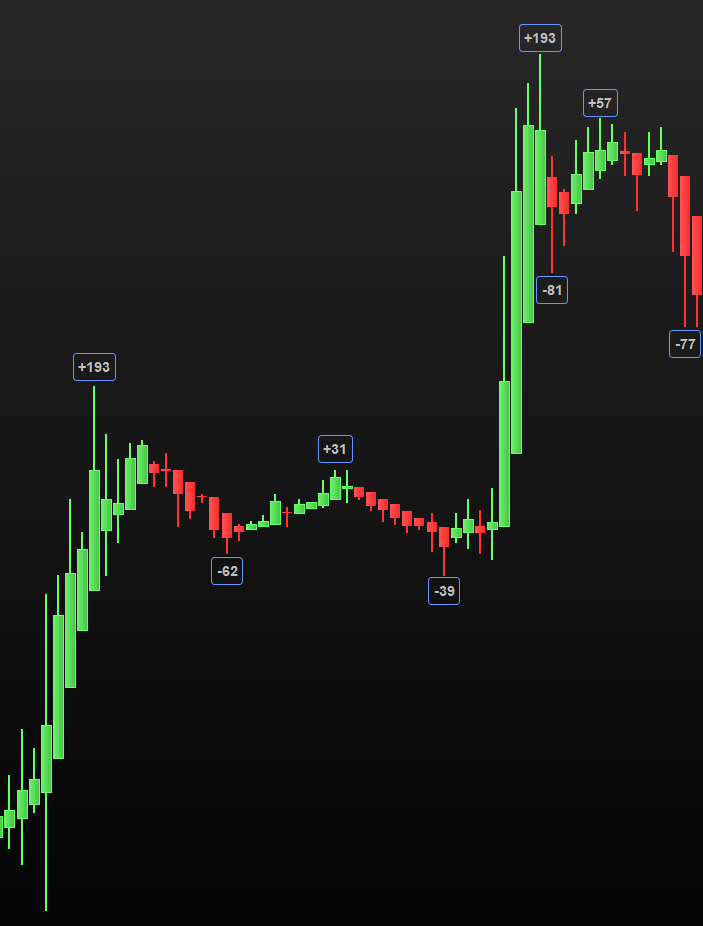 Je recherche à afficher sur le graphique le nombre de points entre les plus hauts et les plus bas comme sur l’image jointe. J’ai cherché sur les forums (peut être mal) mais rien trouvé qui ressemble