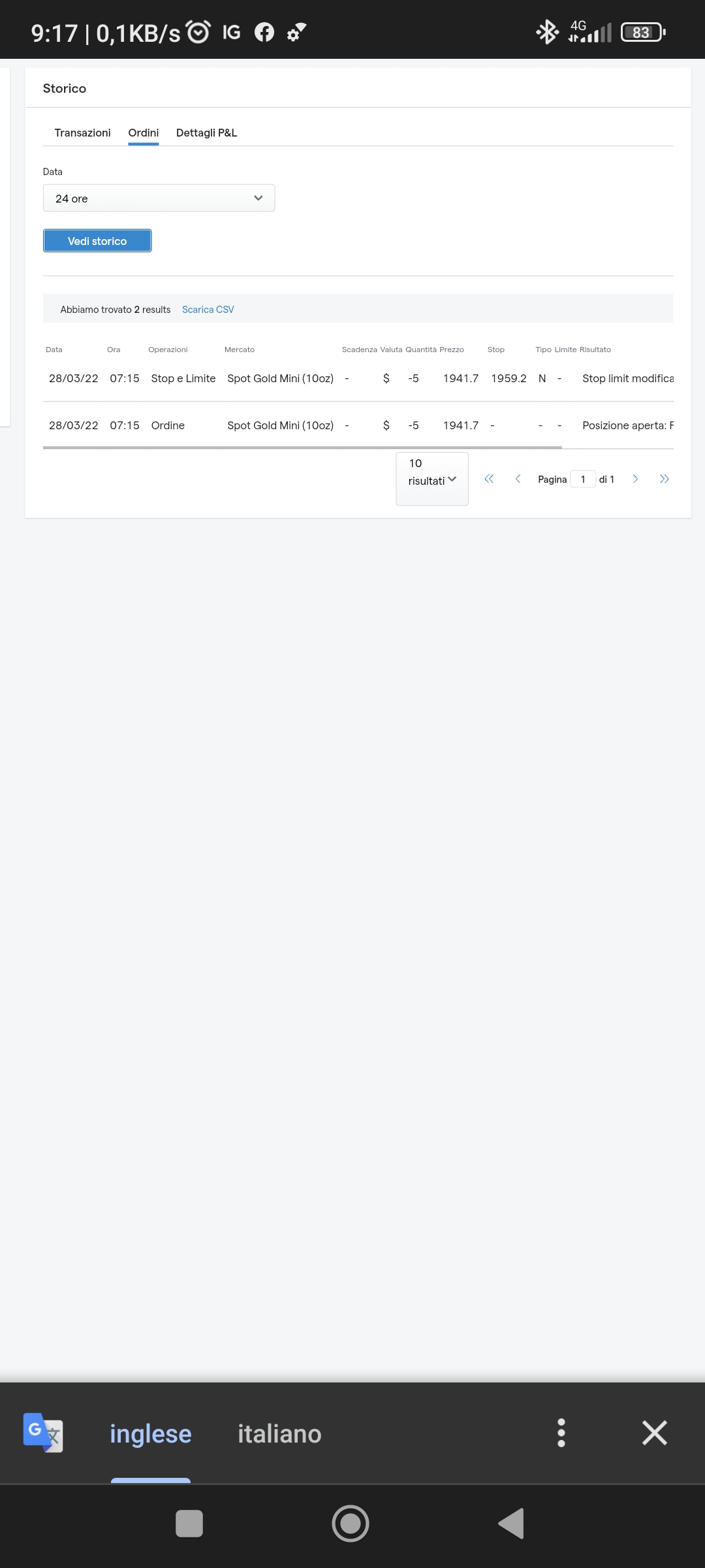 oggi lo farò, ig mi ha detto telefonicamente che l’ordine è stato ricevuto alle 7e15 ed eseguito 3 secondi dopo(il che ci può stare) io poi non credendo a questa spiegazione sono andato a vedere lo storico ordini, se è vero quello che è scritto (vedi foto delle schermate allegate) allora il problema è di prorealtime