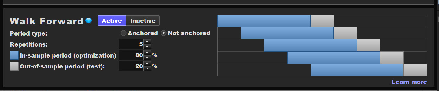 Le point étant avec mes pensées ci-dessus … avec Walk Forward (WF), nous ne voyons que les résultats des cases gris clair.