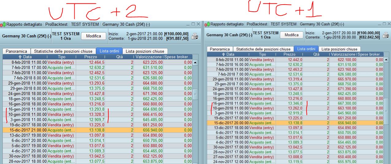 Per favore fai un ultima prova, tu hai il sistema impostato e scritto come il mio, inseriscilo fai delle foto poi cambia fuso e ricontrolla, magari controlla proprio quel periodo da me segnalato dove ci stanno tre segnali di fila spostati, controlla anche il totale gain/loss che fa il sistema e il numero di operazioni, io infatti quando cambio fuso ho un numero diverso di operazioni totali e anche i guadagni/perdite sono nettamente differenti