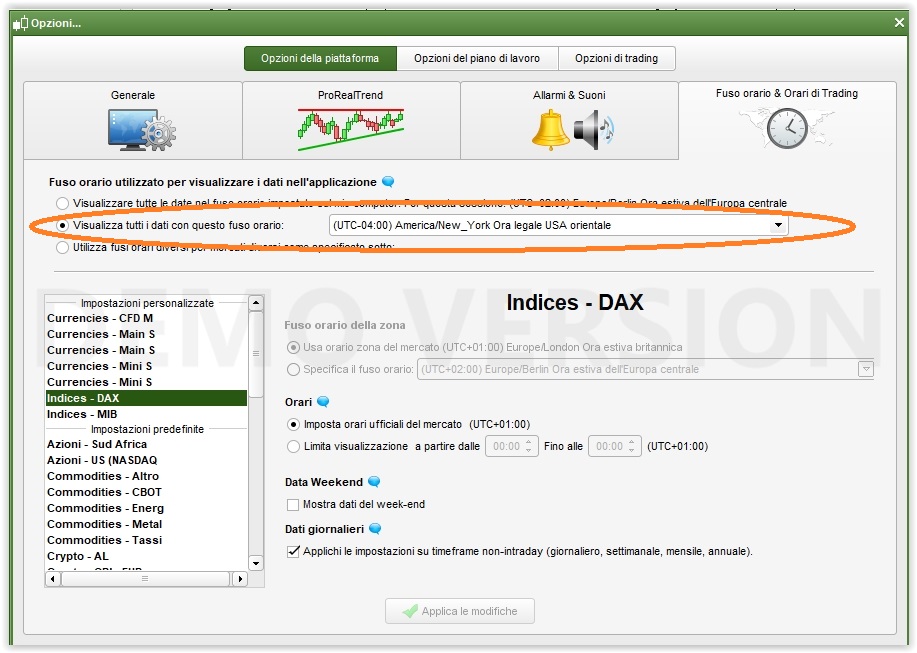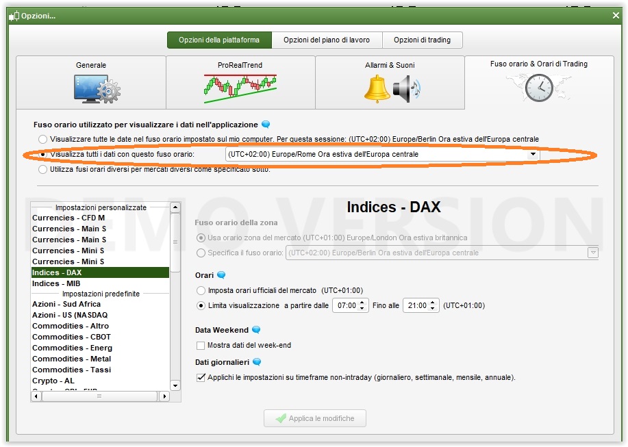 Certo che comanda il fuso orario dello strumento. ProRealTime ti permette di stabiulire, per ogni strumento, un fuso orario a piacimento (come già ti ho fatto vedere) ed è quello che COMANDA, non quello che hai impostato sul tuo PC, per fare le seguenti prove ho variato solo il fuso orario del DAX, non anche quello del PC!