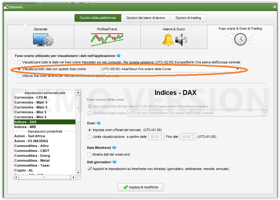 Ti allego 2 screenshot per ogni fuso orario, il primo è relativo alle impostazioni del fuso, il secondo al grafico: