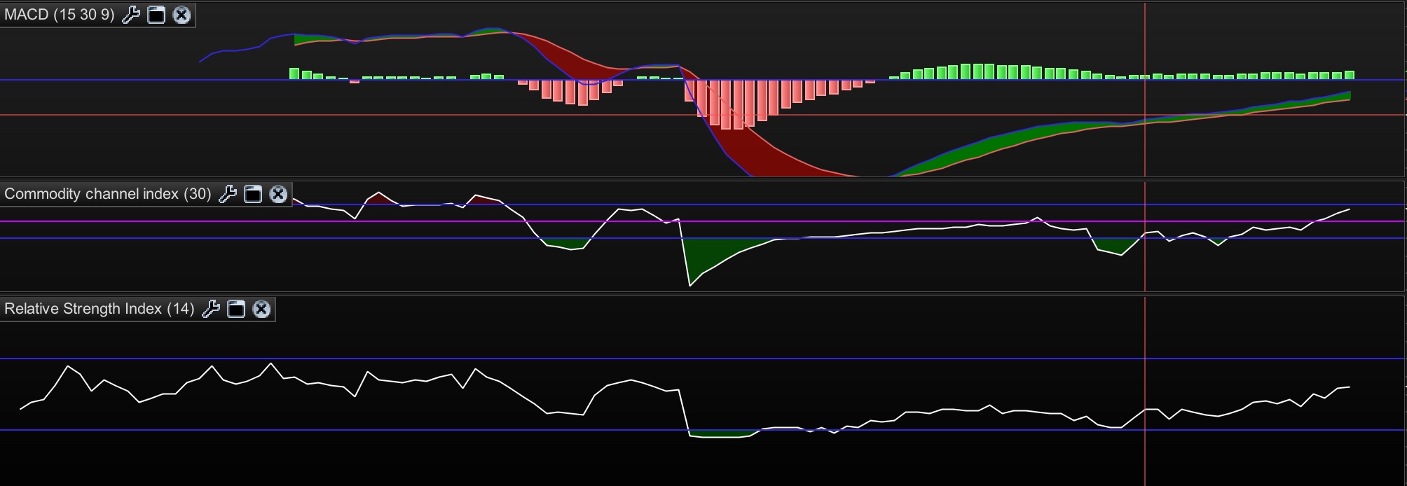 CCI (30) con linea su -100 e su + 100 e con ZERO LINE