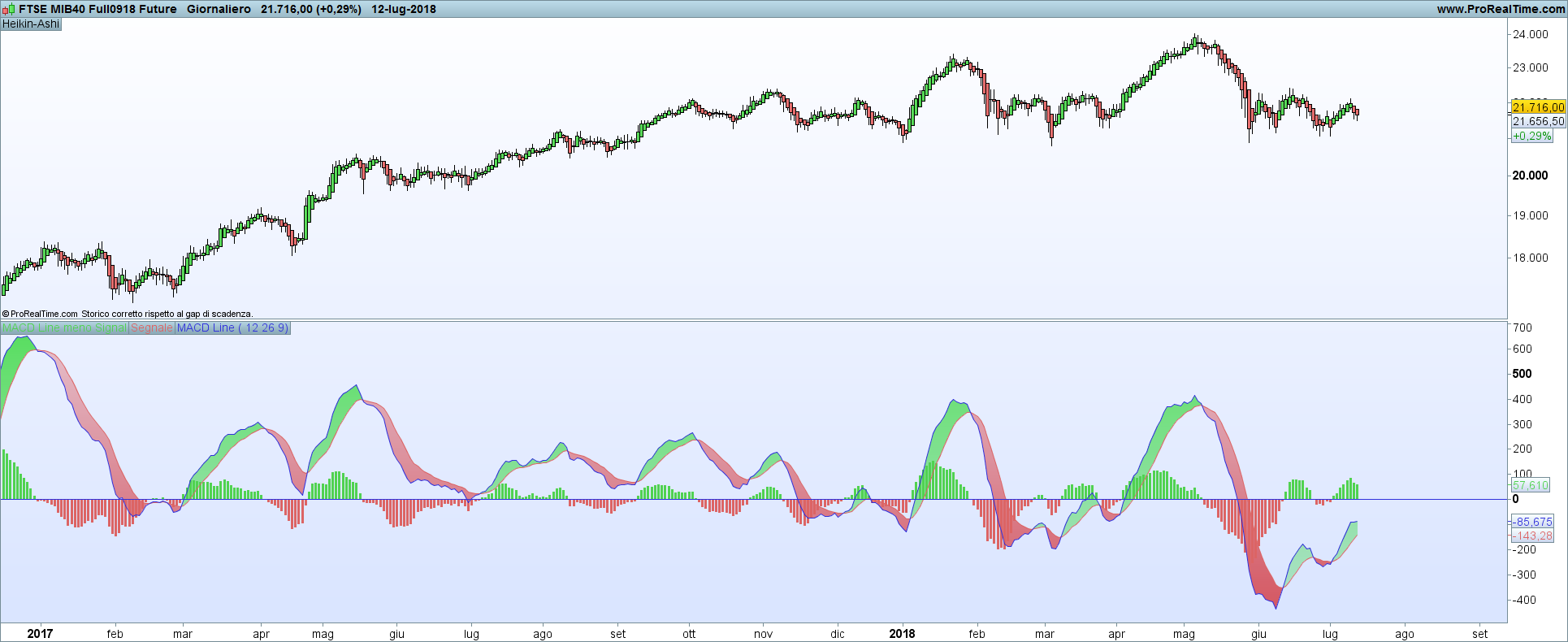Si compra quando la candela heikin e’ verde e la macd line – segnale e’ sopra valore di zero, si vende quando la candela heikin cambia colore e diventa rossa e