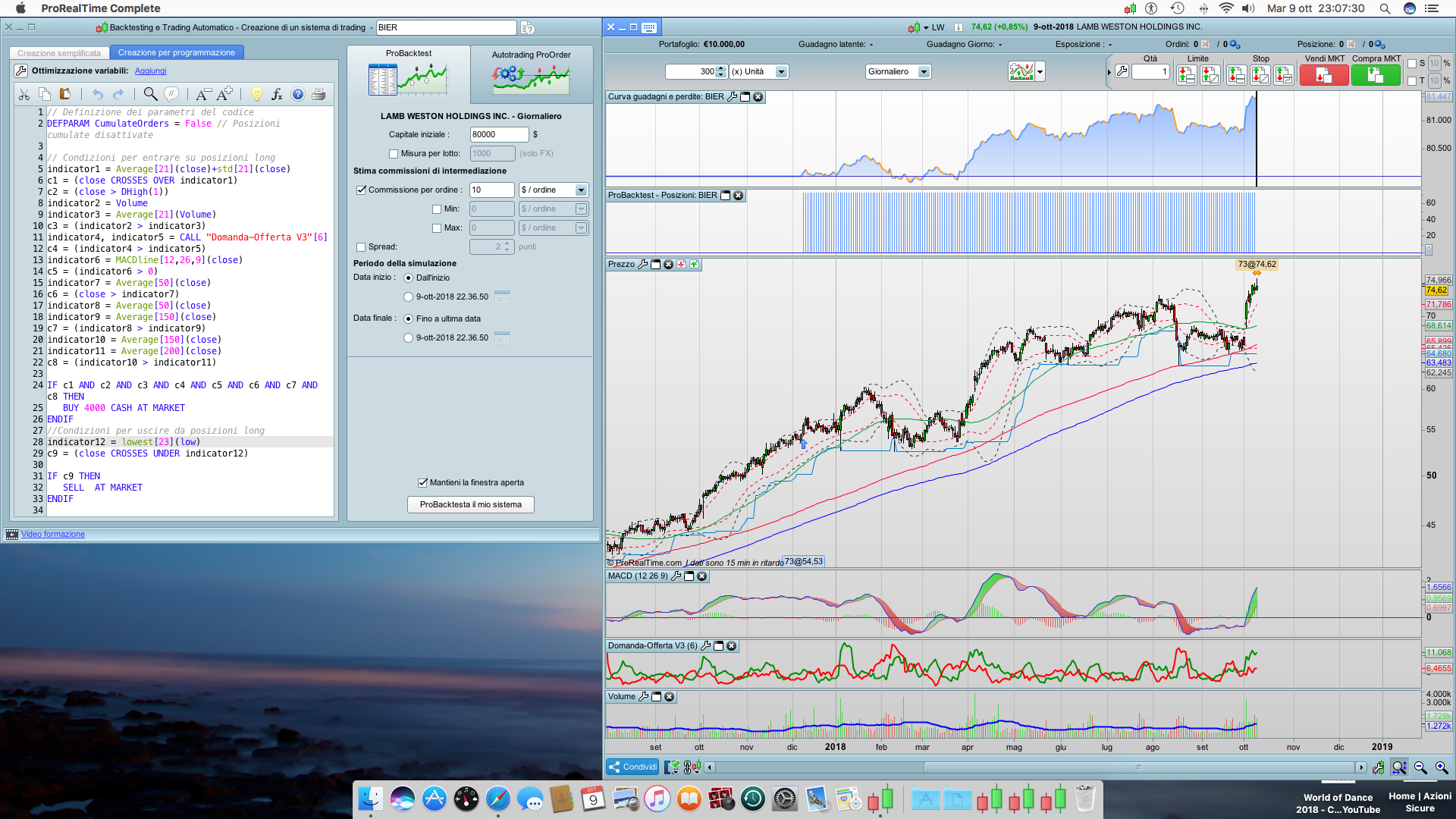 Il timeframe è il giornaliero, il codice per la parte di ingresso in posizione è stato fatto con la programmazione assistita.