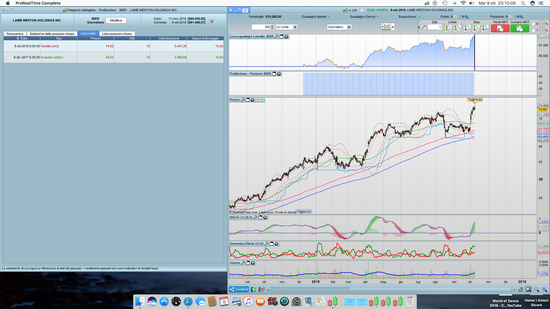 Gli indicatori usati sono MACD,il volume e la sua MM a 21,poi c’è anche un indicatore “Domanda-Offerta V3″che ho comprato e non c’è di base sulla piattaforma.