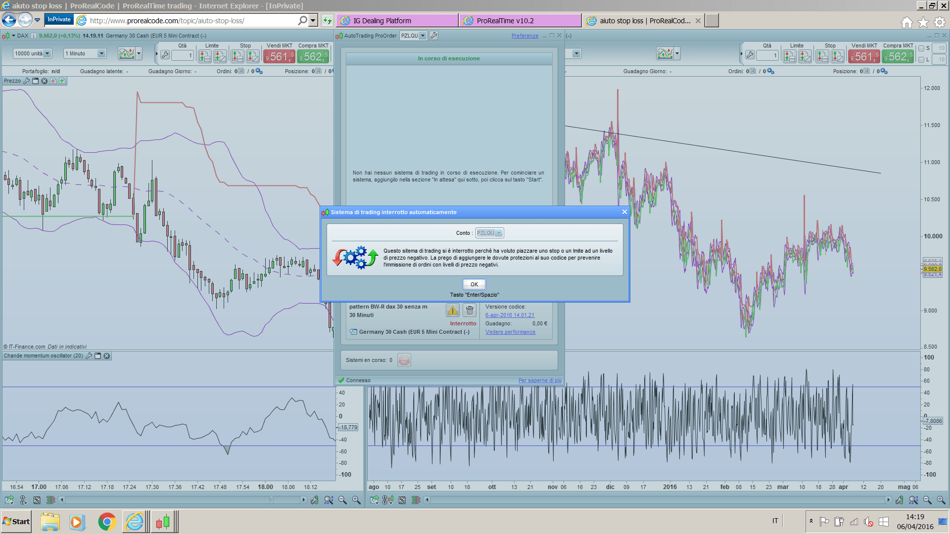Mi rifiuta di fare il trading automatico e mi esce una scritta: