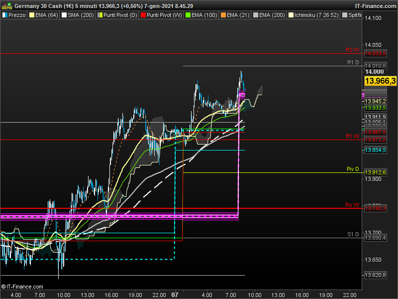 RETURN MaxGiornoPrec COLOURED(0,255,0) AS "MaxGGprec",MinGiornoPrec COLOURED(255,0,0) AS "MinGGprec",Prec1730 COLOURED(0,255,255) STYLE(dottedline,2) AS "17:30 prec",Prec2200 COLOURED(0,255,255) AS "22:00 prec",Apertura COLOURED(255,0,255) STYLE(dottedline,3) AS "Apertura",Ob1 COLOURED(255,0,255) AS "Obbiettivo1",Ob2 COLOURED(255,0,255) AS "Obbiettivo2", Ob3 COLOURED(255,0,255) AS "Obbiettivo3",Ob4 COLOURED(255,0,255) AS "Obbiettivo4",Ob5 COLOURED(255,0,255) AS "Obbiettivo3",Ob6 COLOURED(255,0,255) AS "Obbiettivo4",Ob7 COLOURED(255,0,255) AS "Obbiettivo3",Ob8 COLOURED(255,0,255) AS "Obbiettivo4",Rs1 COLOURED(255,255,255) AS "Resistenza1",Rs2 COLOURED(255,255,255) AS "Resistenza2",Rs3 COLOURED(255,255,255,16) AS "Resistenza3",PrecMaxW AS "Max.Settim.preced.",PrecMinW AS "Min.Settim.preced."
