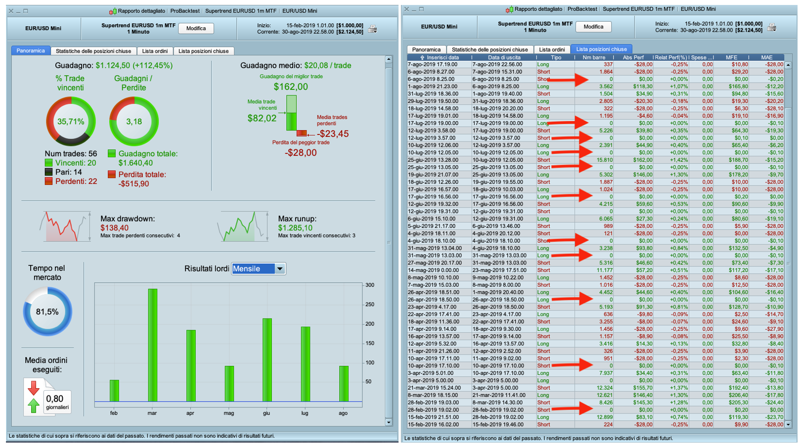 Il fatto è che lavora anche bene, se non fosse che apre delle posizione e le richiude istantaneamente come potete vedere nell’immagine allegata.
