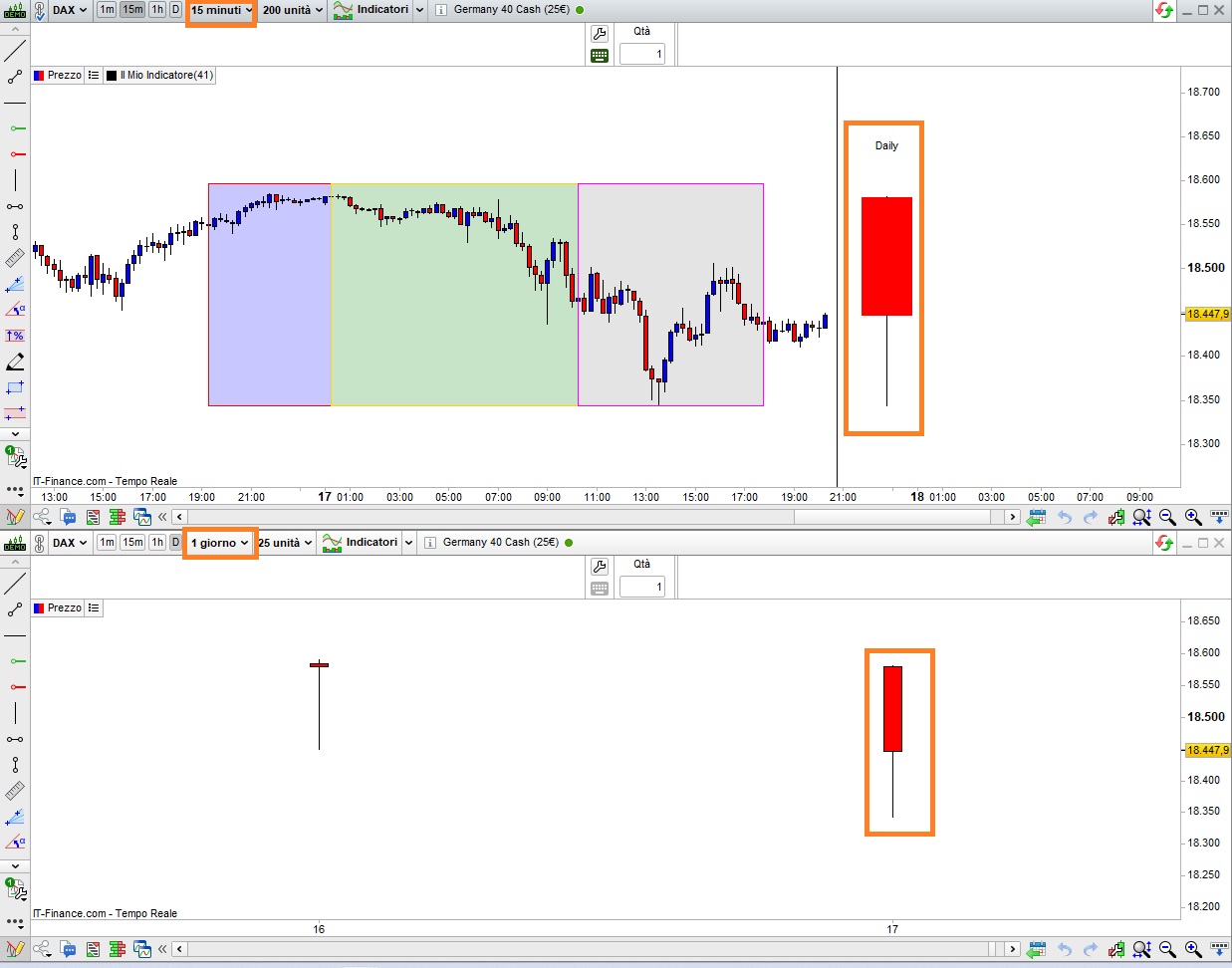 DrawRectangle(BarIndex + 6,OP,BarIndex + 14,CL) coloured("Red") bordercolor("Red") //Bearish Body