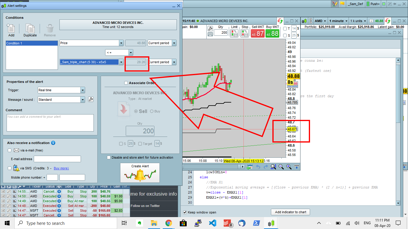 I am using the ALARM with my custom indicator.