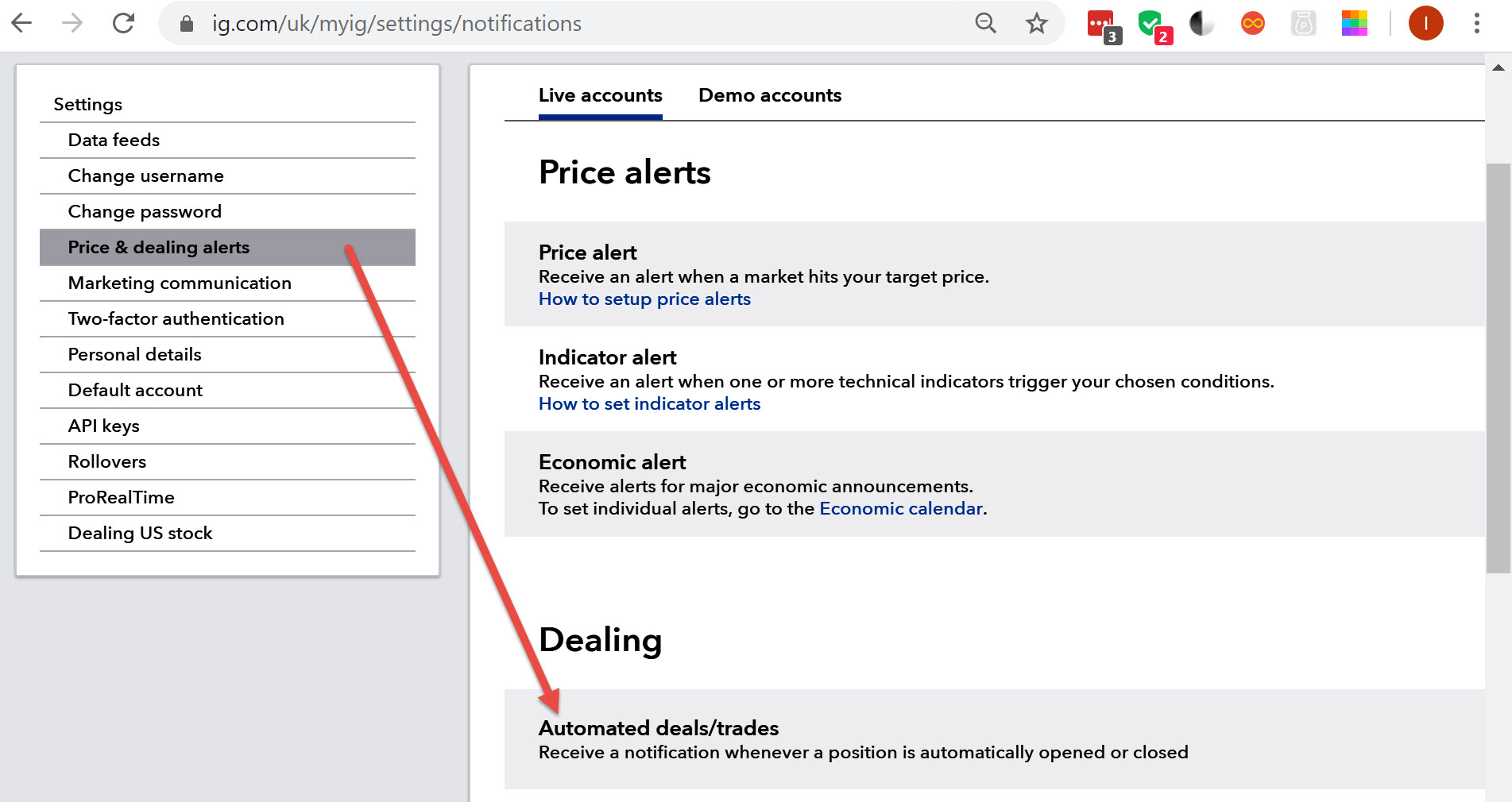 If you are with IG then you can set it up via the IG Platform.