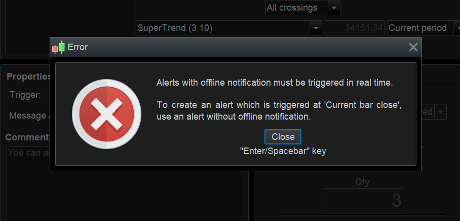2. Are you expecting / wanting offline Alerts? Attached 2nd image says we cannot have offline Alerts with current bar close.