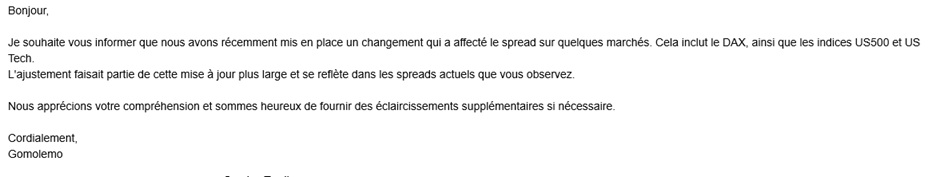 It’s in French, but basically they answered: We changed some stuff and that influenced the spread of DAX, US500 and USTech. Hope you get that and we are happy to supply additional clarifications if necessary.