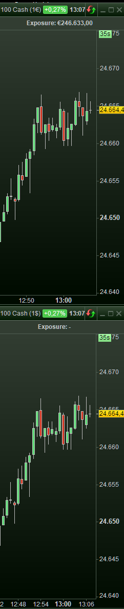 I have checked $ against € for US 500 and US Tech 100 on seconds charts and minute charts, and both currencies are exactly the same now ! 🙂