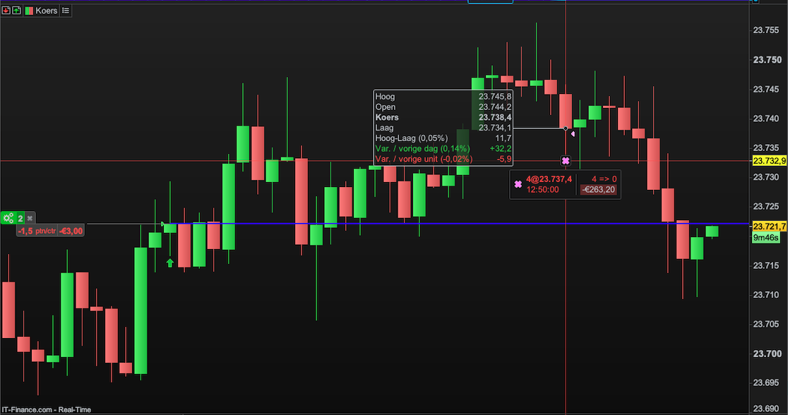 After restarting my algo, a (virtual) position of four (!) contracts was suddenly closed with a €263.20 loss…
